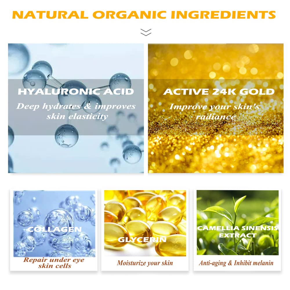 Organic 24K Gold Collagen Eye Mask Anti-Dark Circles, Puffiness & Wrinkle-Reducing Under Eye Patches